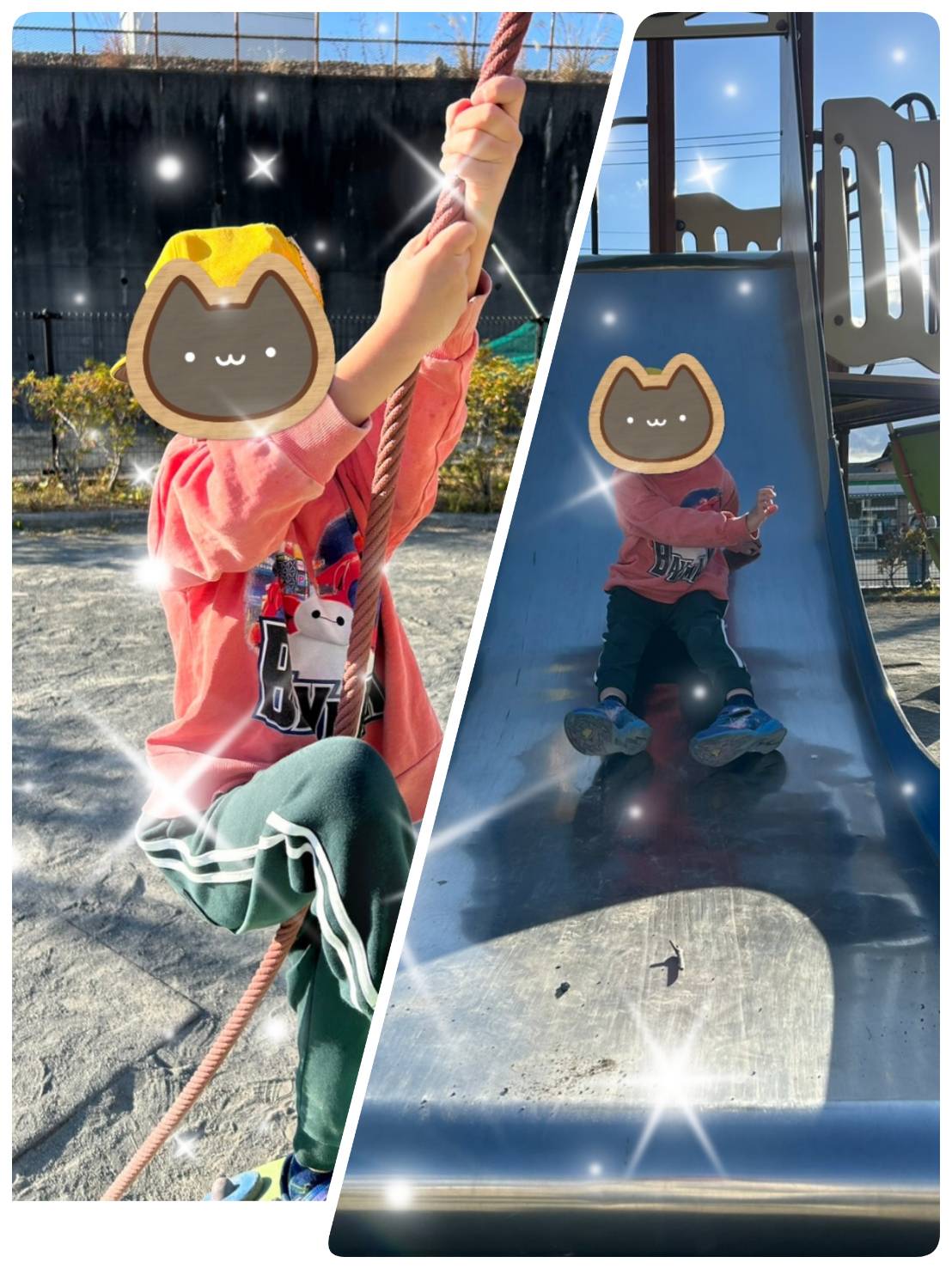 公園では滑り台を滑るために綱を上手に使って登る事ができました~!